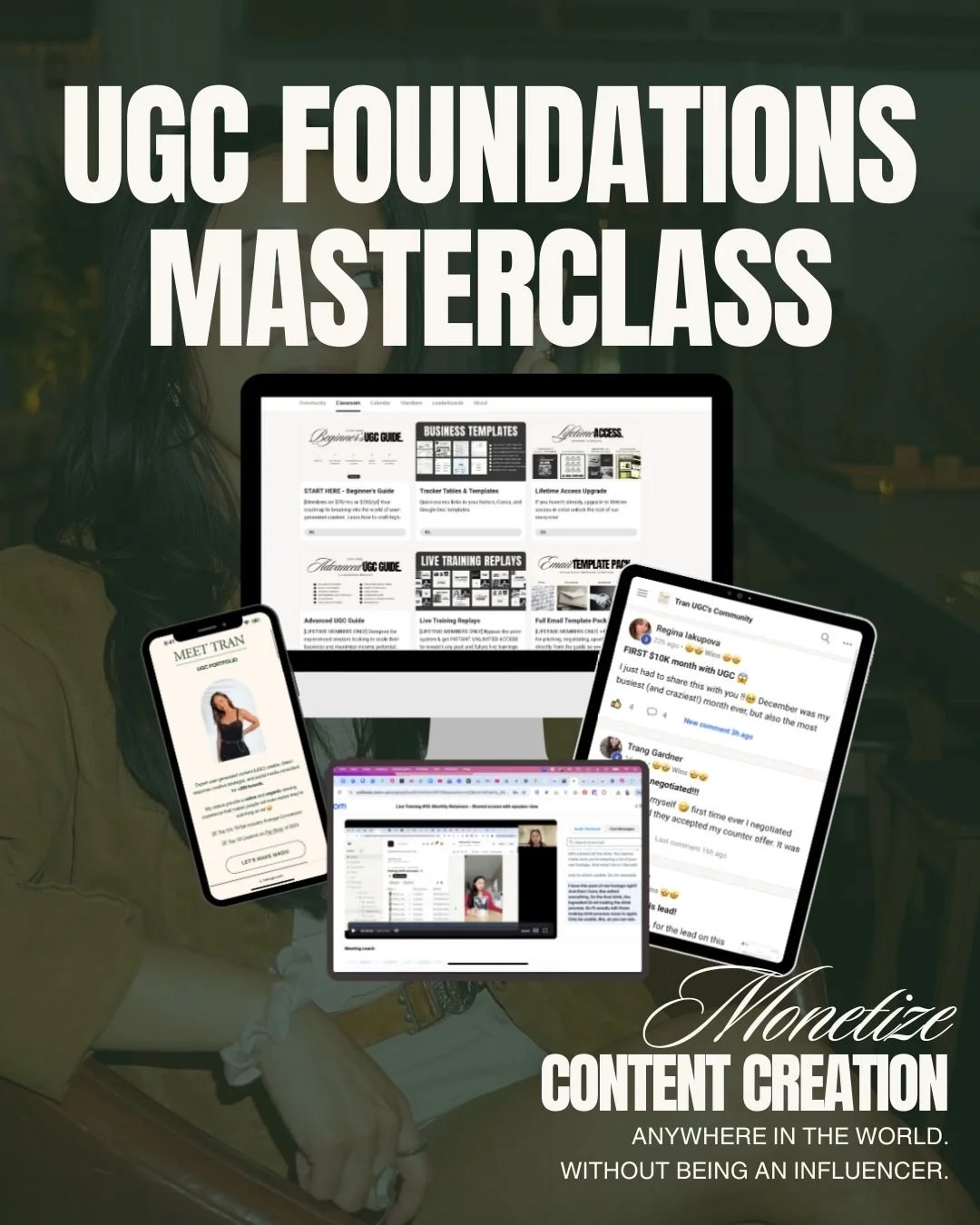 The Masterclass will teach you how to expand your income streams, raise your rates, sign higher UGC deals more consistently, and scale to the 6-figure club!