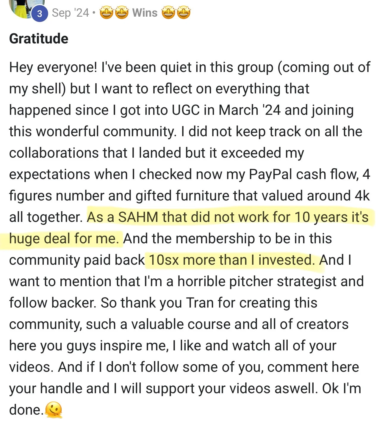 Everyone’s journey and pace is different, but we are seeing TONS of creators already get consistent paid wins within just 1 month of being in the community.