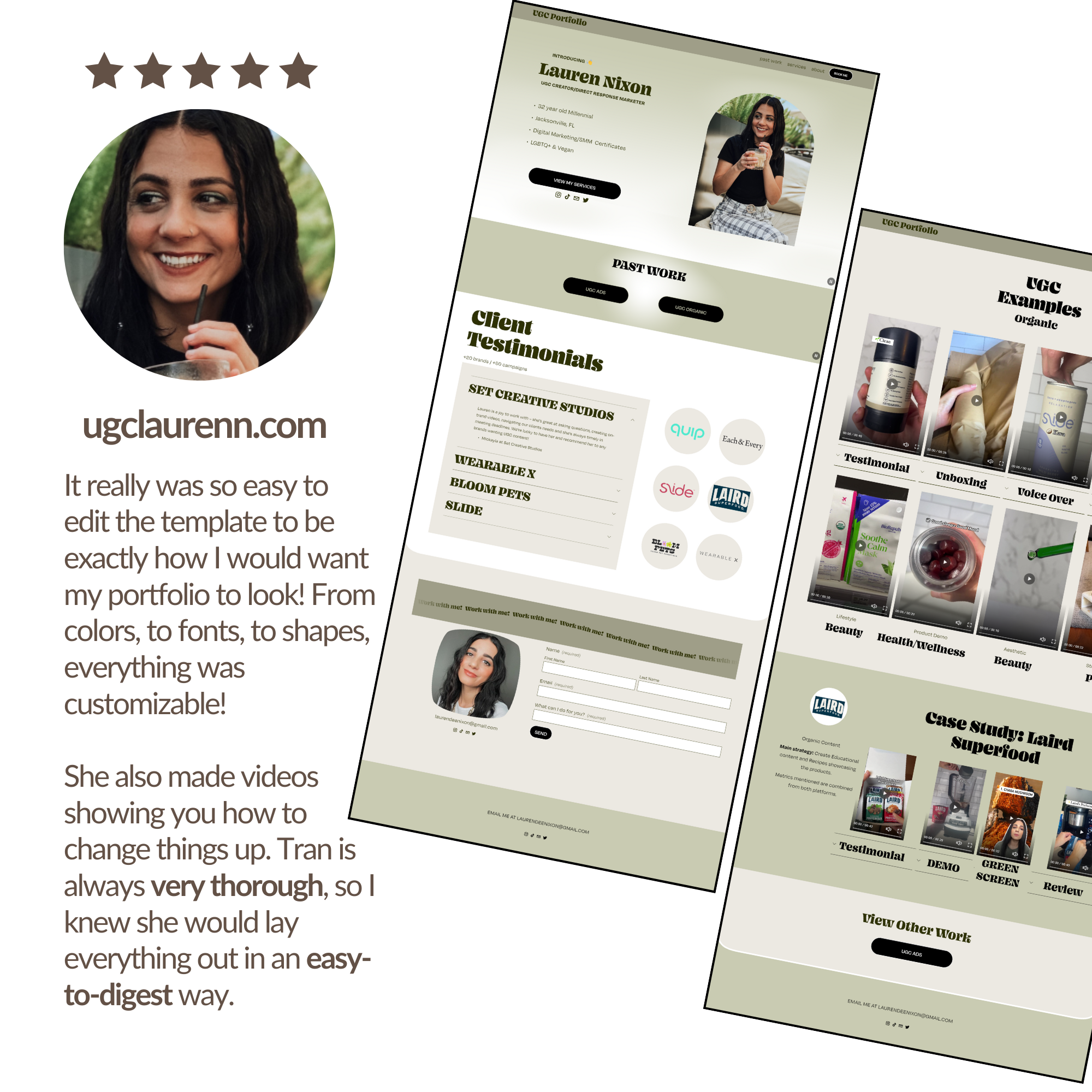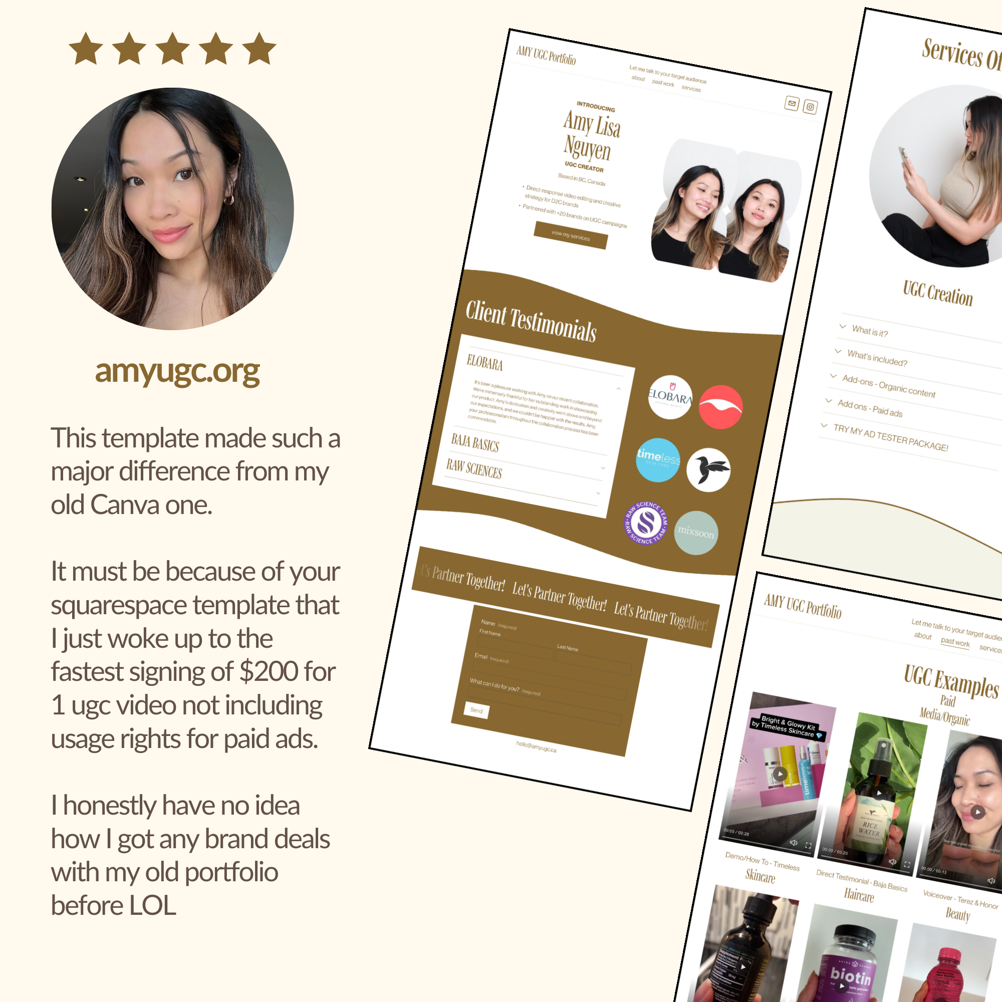 Say goodbye to the limitations of Canva and hello to a professional Squarespace website template designed exclusively for UGC creators. Strategically built to showcase your best work, highlight your services, and impress brands, this template includes: