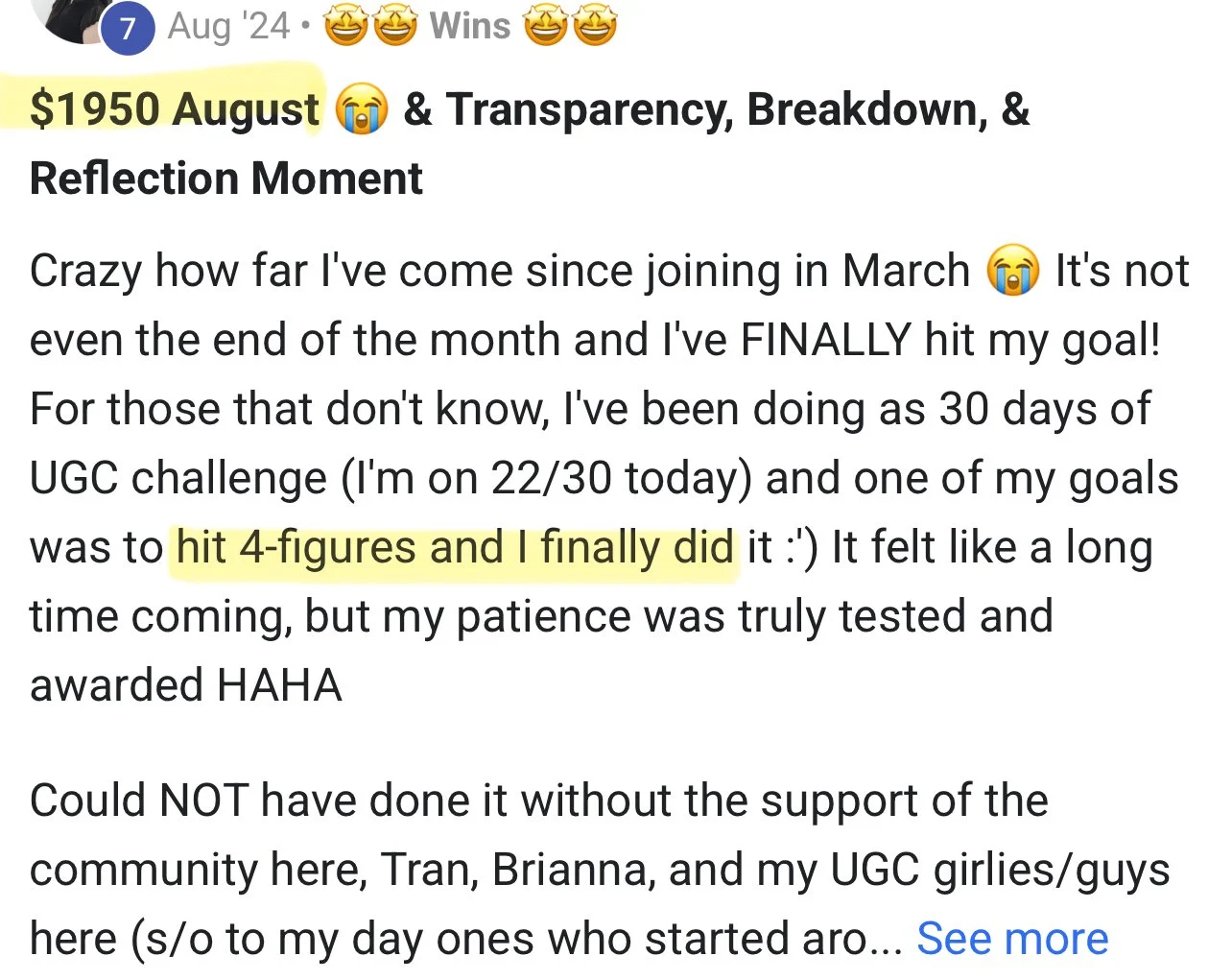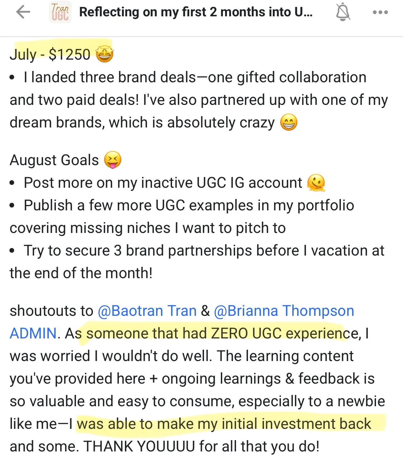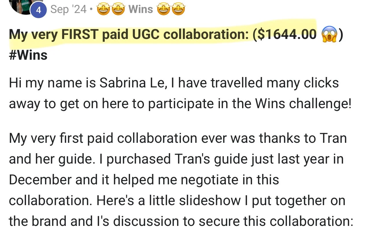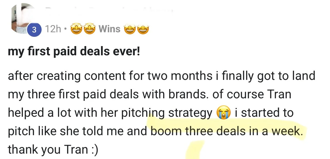 Everyone’s journey and pace is different, but we are seeing TONS of creators already get consistent paid wins within just 1 month of being in the community.